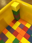 The next group that shared, showed the drawing to the right. When I asked them about their drawing, they said, “The yellow box is the longest.” I said, “oh, what is this in here?” The student said, “that is the 16 because it is 16 long.” I said, “oh so you labeled it so we would know how long it was. Are these the legos that were used to measure?” Student: “yes.” Me: “Okay, can you tell us more about your picture?” Student: “No.” Other teacher, “you said you drew that box over there for something. What is that?” Student: “Oh, that is the white box. It’s the shortest.” Me: “So what do we think of this drawing? Does it answer the question? How could this drawing be improved to prove their thinking?”